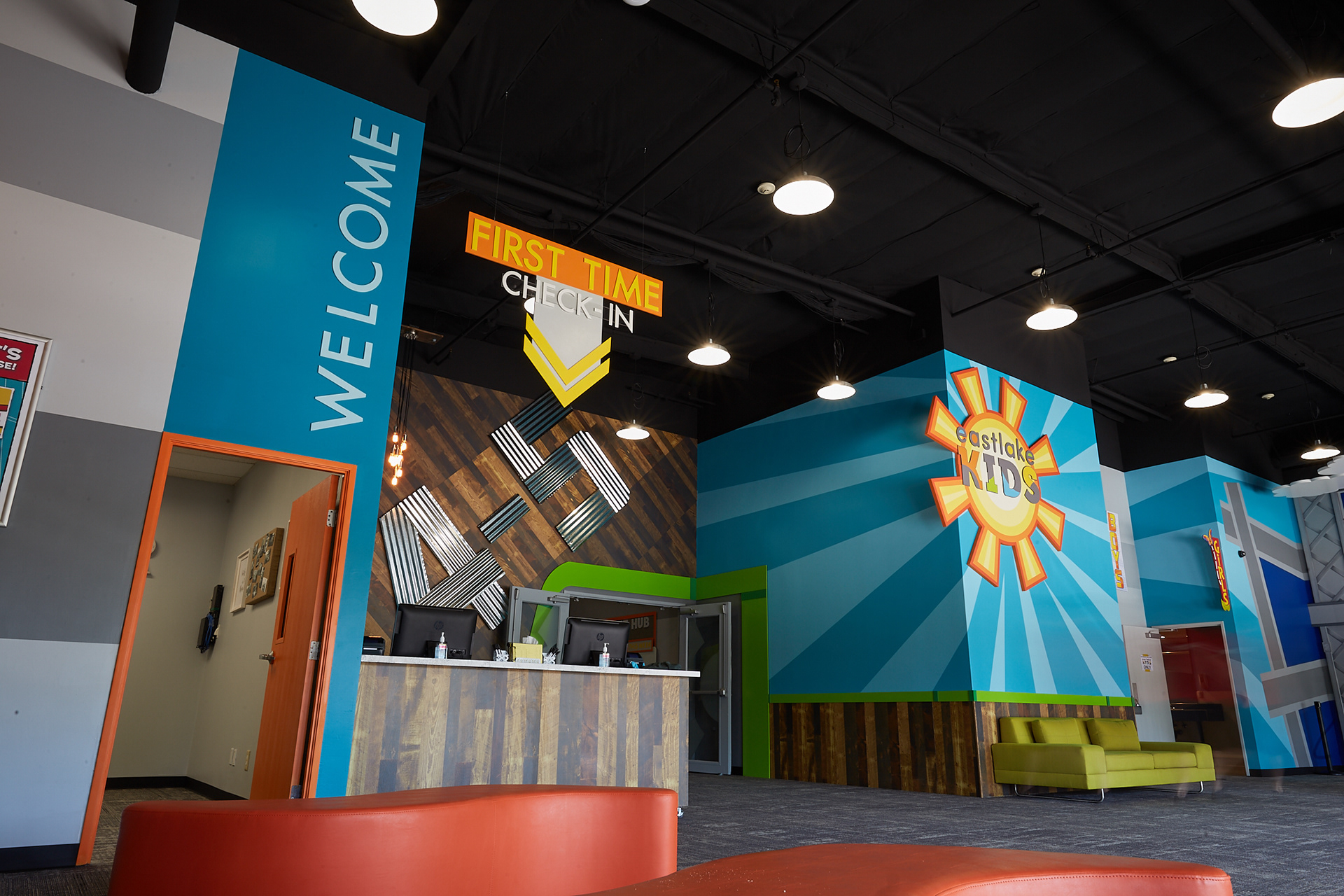 Cornerstone Church was a project with distinct looks for various age groups. A cute, larger than life look was created for the younger age groups, while a graphic, bright, and bold look was needed for the older kids. The materials of the areas adjacent to adult spaces,such as the check-in, integrated the look of the building into the kids space. The various elements was all tied together by color, materiality, and brand. The final look of the project was captivating and one of the strongest pieces in the portfolio for Worlds of Wow.